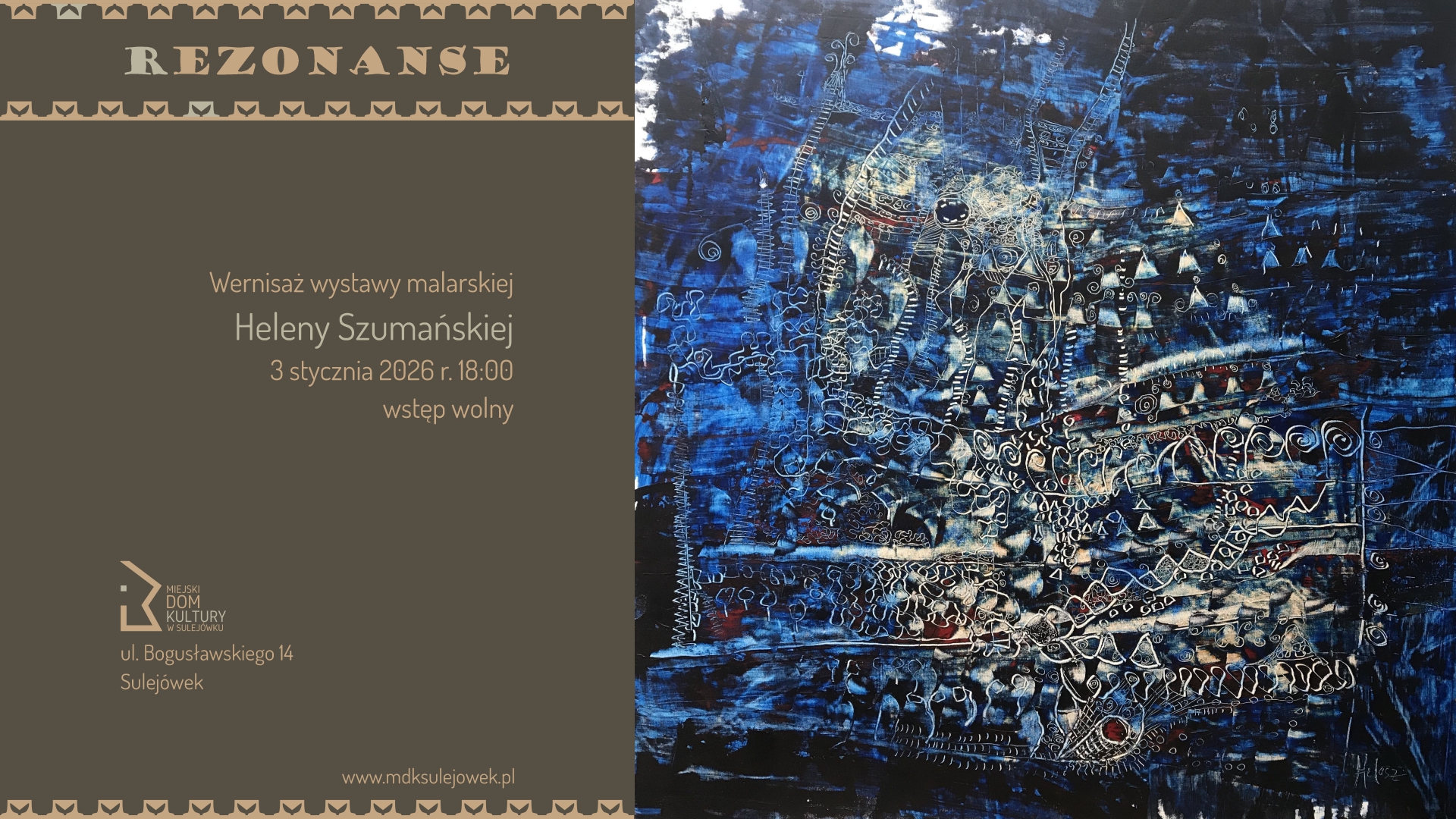 Zapraszamy serdecznie na niezwykłą wystawę prac wybitnej francusko-polskiej malarki Heleny Szumańskiej, mieszkającej w partnerskim mieście Bourg-la-Reine.