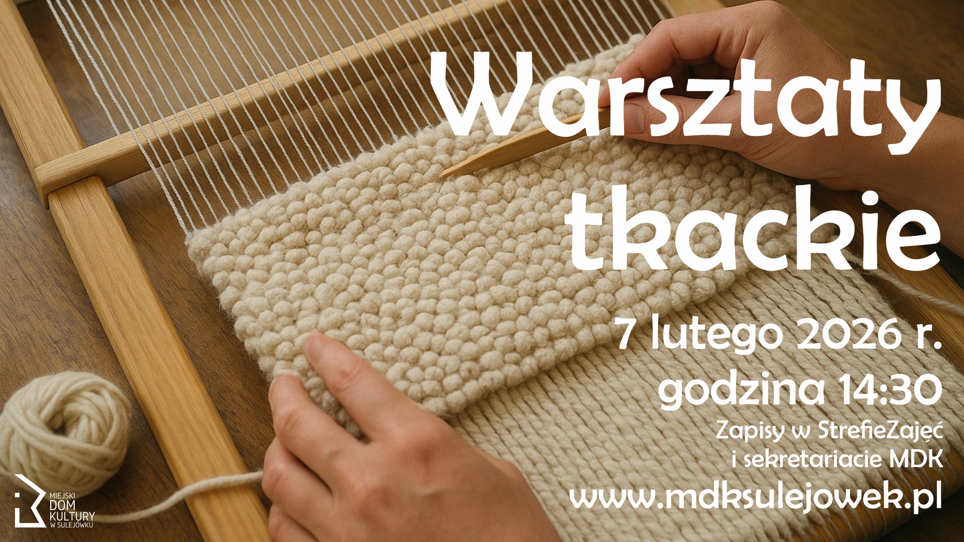Zapraszamy serdecznie na nasze sobotnie warsztaty tkackie!Podczas zajęć poznasz podstawowe sploty i techniki tkackie, nauczysz się tworzyć własne tkaniny i odkryjesz radość płynącą z pracy...