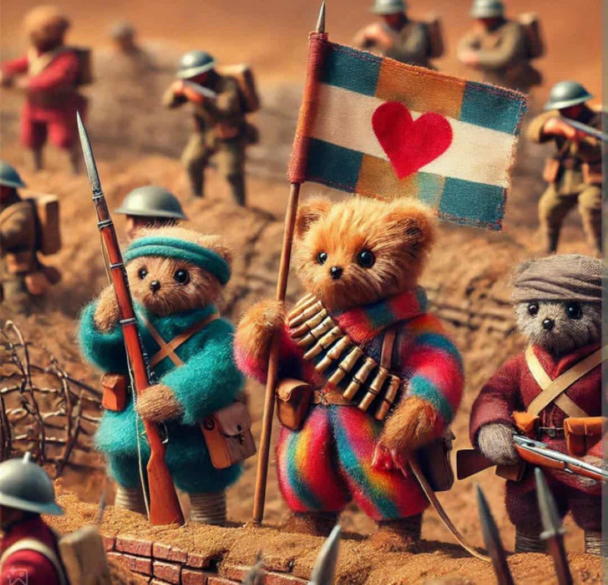 Minęły trzy lata odkąd granicę Krainy Troskliwości zostały naruszone przez królestwo Equestrii. Rządna podboju i rozszerzania swoich terytoriów królowa Celestia naruszyła traktat pokojowy z niezależnym rządem Krainy Troskliwosci. Wydawało jej się że kampania potrwa kilka dni. Nie zdawała sobie jednak sprawy jak wielkie serca mają mieszkańcy Krainy Troskliwości. A całe serca wypełnia miłość do ojczyzny. Linia frontu każdego dnia przesuwa się na korzyść kucyków ale dziś wszystko miało się zmienić. Naukowcy z projektu "ostatni przytulas" ogłosili że osiągnęli przełom. Grupa doborowo dobranych misiów-desperatów z drużyny kapitana Tulisia zgłosiła się na ochotnika aby dostarczyć tajną broń na linię najbardziej zażartych walk.