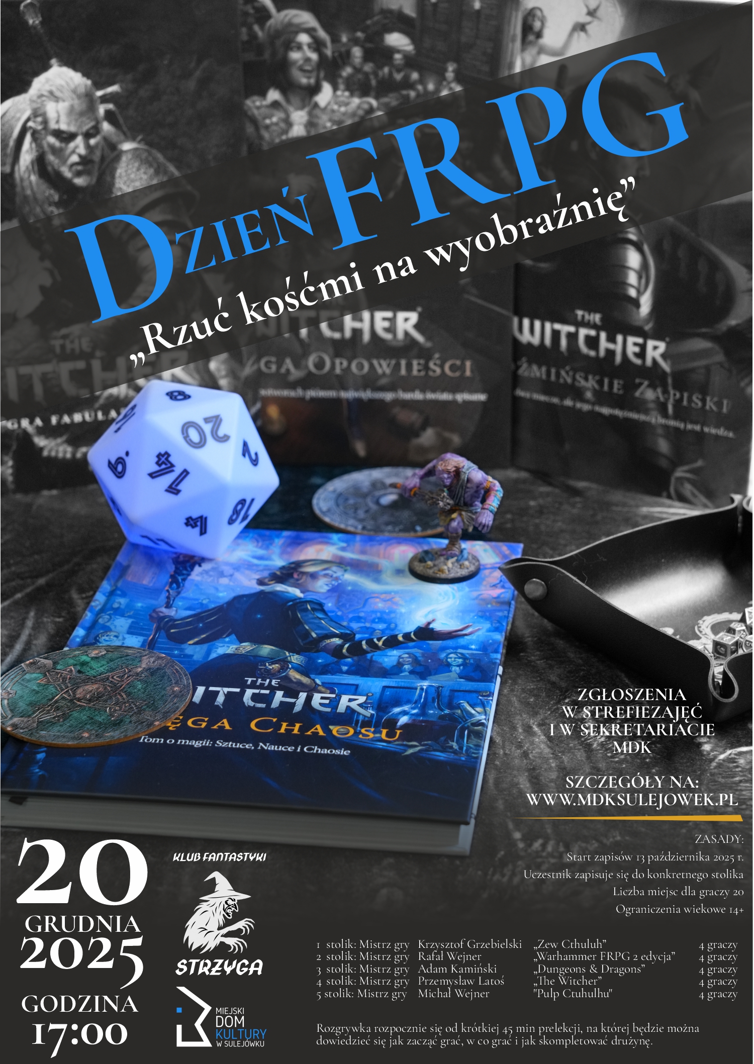 Udział w rozgrywce kosztuje 20 zł od osoby. UWAGA! Udział w prelekcji jest bezpłatny!