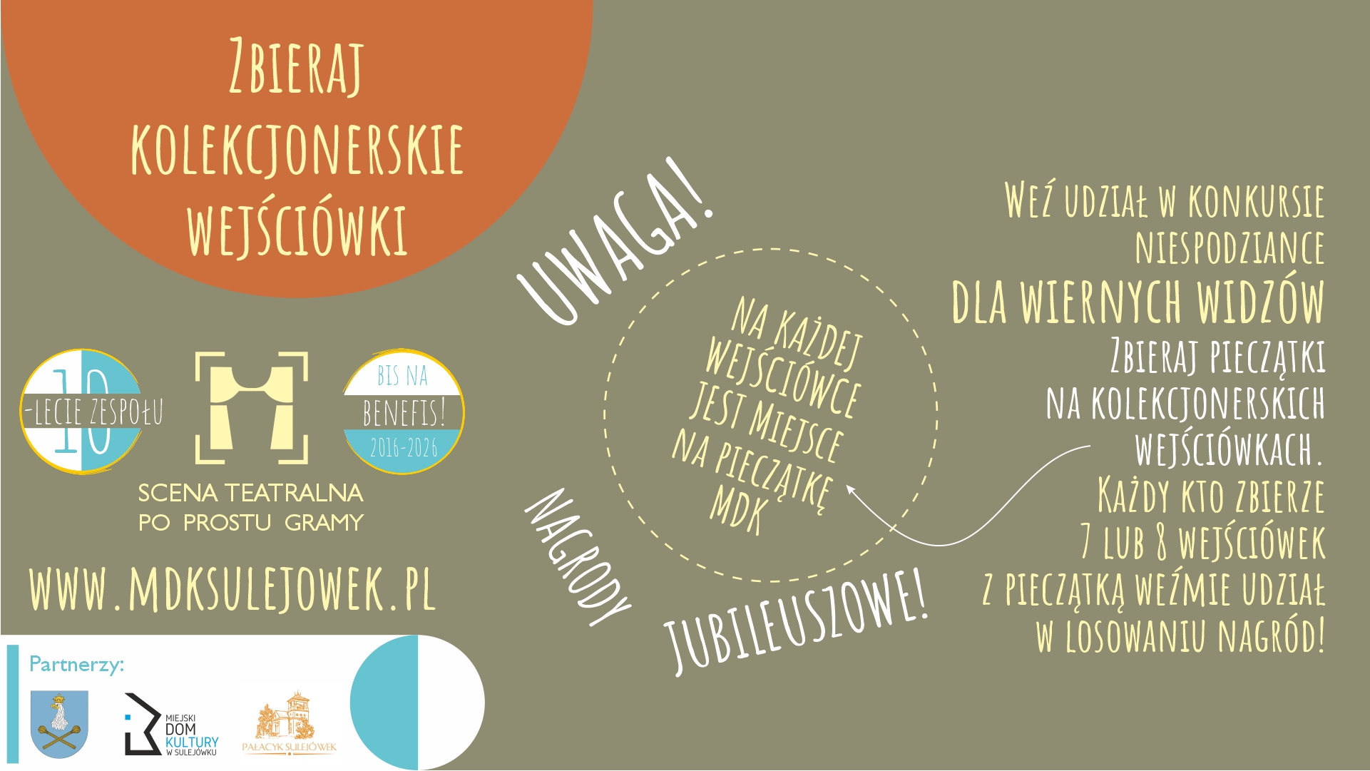 Na każdym z biletów jubileuszowych spektakli jest miejsce na stempelek, który będzie można uzyskać po przedstawieniach. Na osoby, które zbiorą siedem stempli czekają nagrody! Losowanie nagród odbędzie się podczas Gali Jubileuszowej.