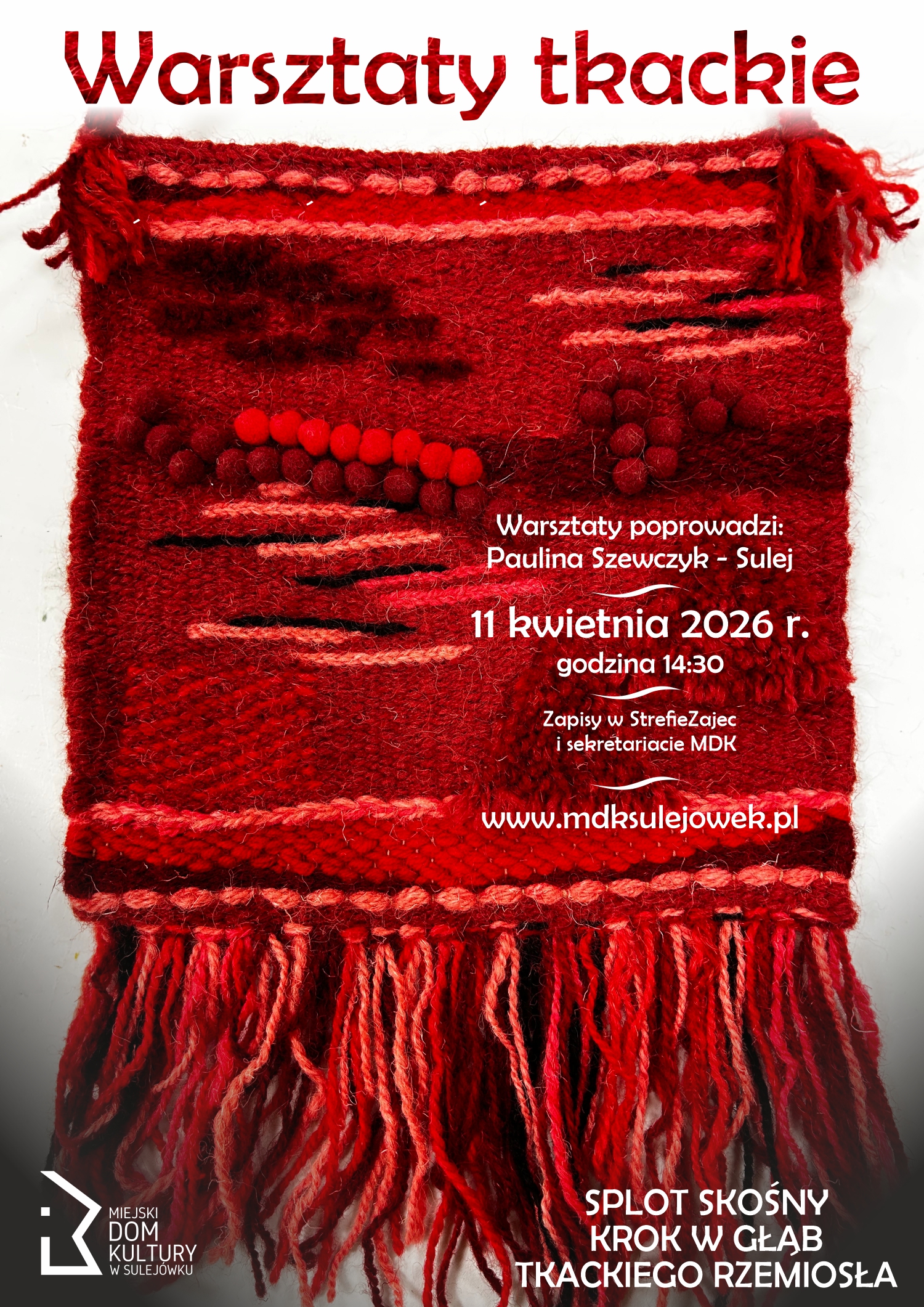 Zapraszamy serdecznie na nasze sobotnie warsztaty tkackie!Podczas zajęć poznasz podstawowe sploty i techniki tkackie, nauczysz się tworzyć własne tkaniny i...