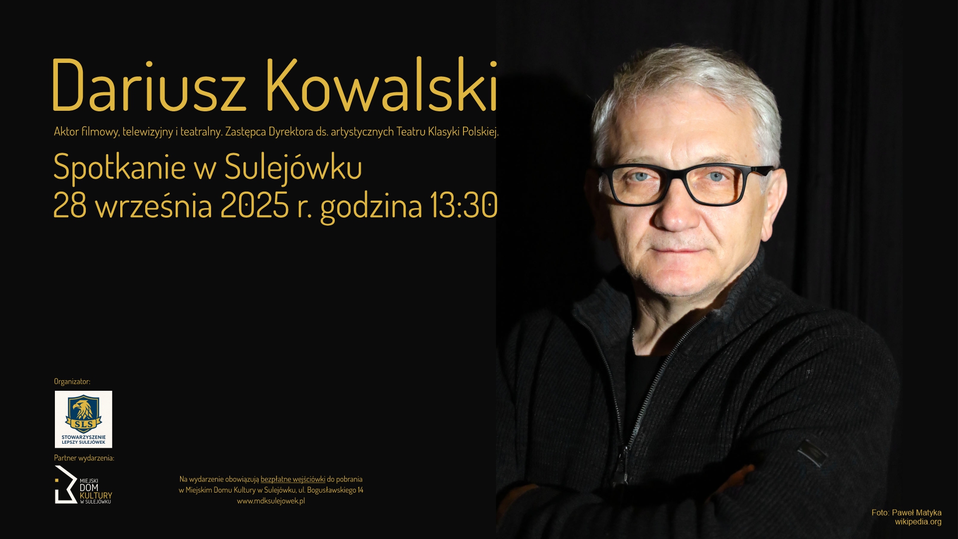 Stowarzyszenie Lepszy Sulejówek oraz Miejski Dom Kultury w Sulejówku zapraszają bardzo serdecznie na spotkanie z aktorem: