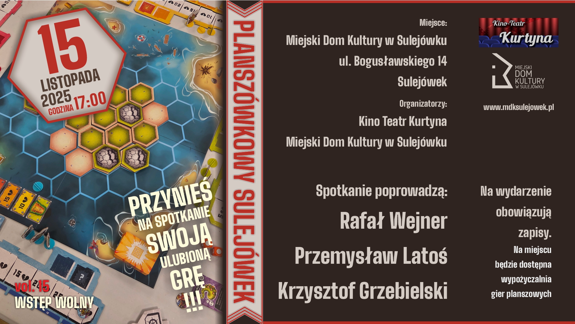 Siódme przygody miłośników gier planszowych w Sulejówku. Wydarzenie dla wszystkich osób, które chciałyby poznać oraz zagrać w kultowe gry. Skierowane jest zarówno do początkujących, jak...