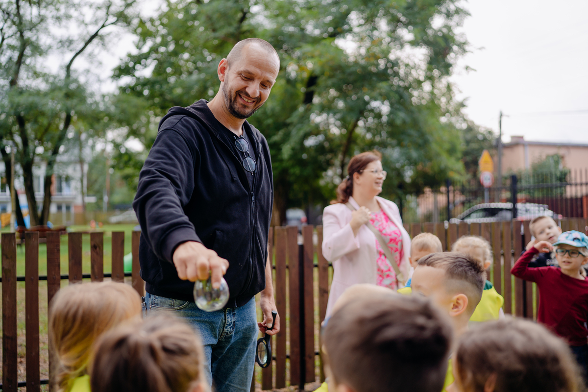 15 września 2025 roku, Przedszkolaki z Przedszkola nr 1 wzięły udział w wyjątkowej lekcji w plenerze, którą poprowadził Michał Książek, polski poeta, reportażysta, kulturoznawca, inżynier leśnik i ornitolog.