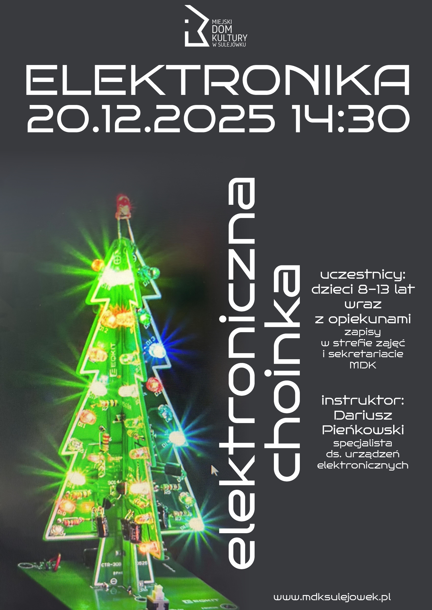 Zapraszamy na kolejną przygodę dla dzieci(wiek 8-13 lat) i opiekunów w świecie elektroniki! Spotkanie, prowadzone przez pełnego kreatywnych pomysłów Dariusza Pieńkowskiego...