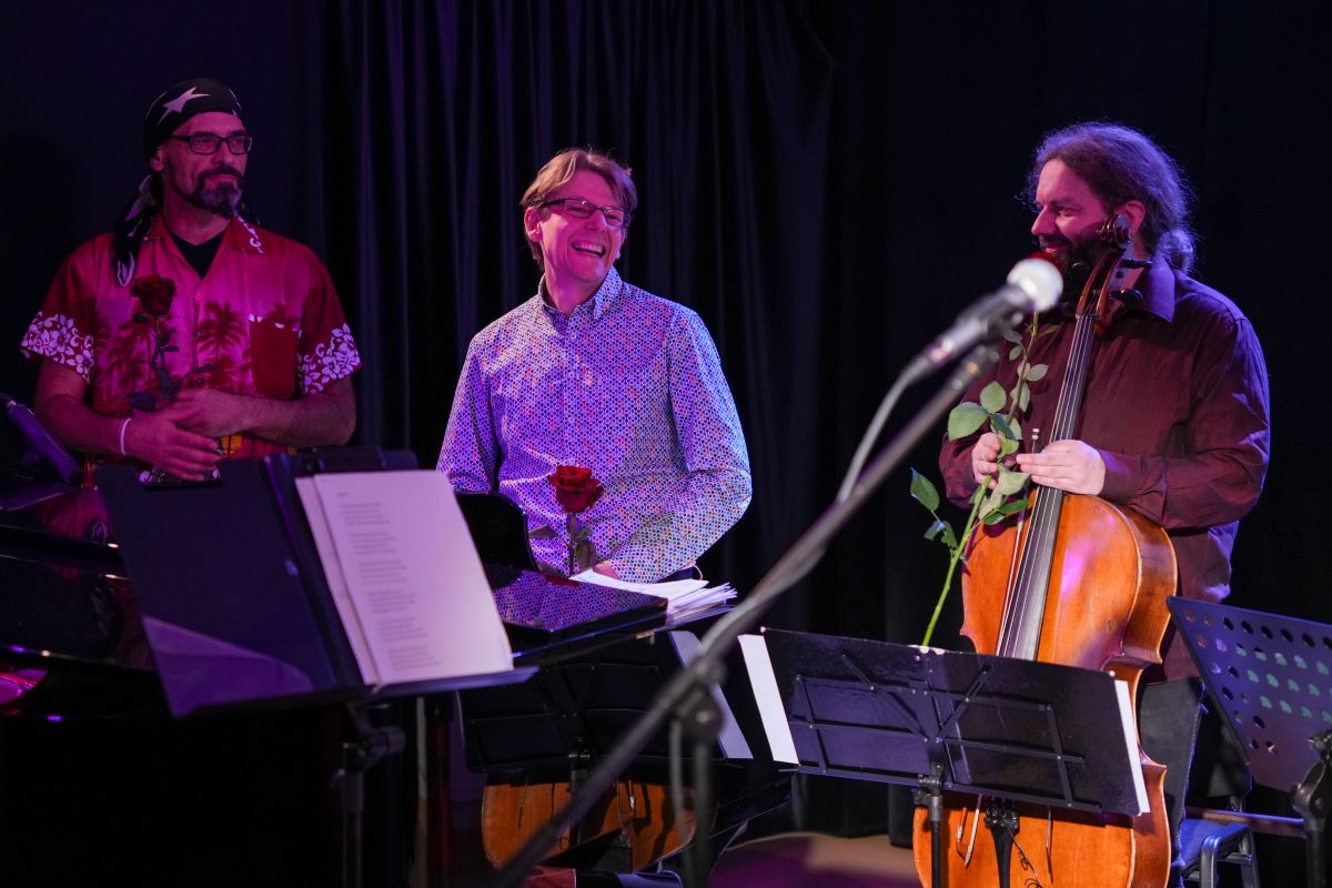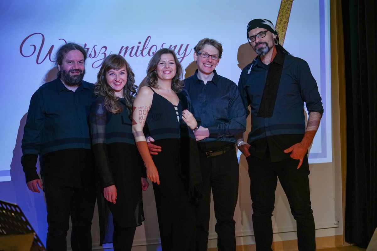 Dobrze znany w Sulejówku i bardzo lubiany, artystyczny(i małżeński zarazem) duet: Wioletta i Michał Witkowscy, oczarowany nagrodzoną w minionych edycjach poezją, dokonał wyboru(bardzo trudnego, ze względu na wielość inspirujących tekstów) dziesięciu wierszy. Zostały z wielkim smakiem i wyobraźnią ujęte przez Michała w barwne, muzyczne kompozycje. Kompozycje uchwyciły różnorodność i muzyczną plastyczność dzieł Poetów. Piosenki, które zabrzmiały w sobotni wieczór rozgrzały salę i spotkały się z bardzo życzliwym odbiorem Publiczności(wśród której zasiadali również Autorzy tekstów). Wykonał je zespół w składzie: Wioletta Witkowska(wokal), Michał Witkowski(fortepian) i zaproszeni przez nich Goście: Joanna Kurach(skrzypce), Edward Poliński(perkusja) oraz Tomasz Sznabel(wiolonczela).