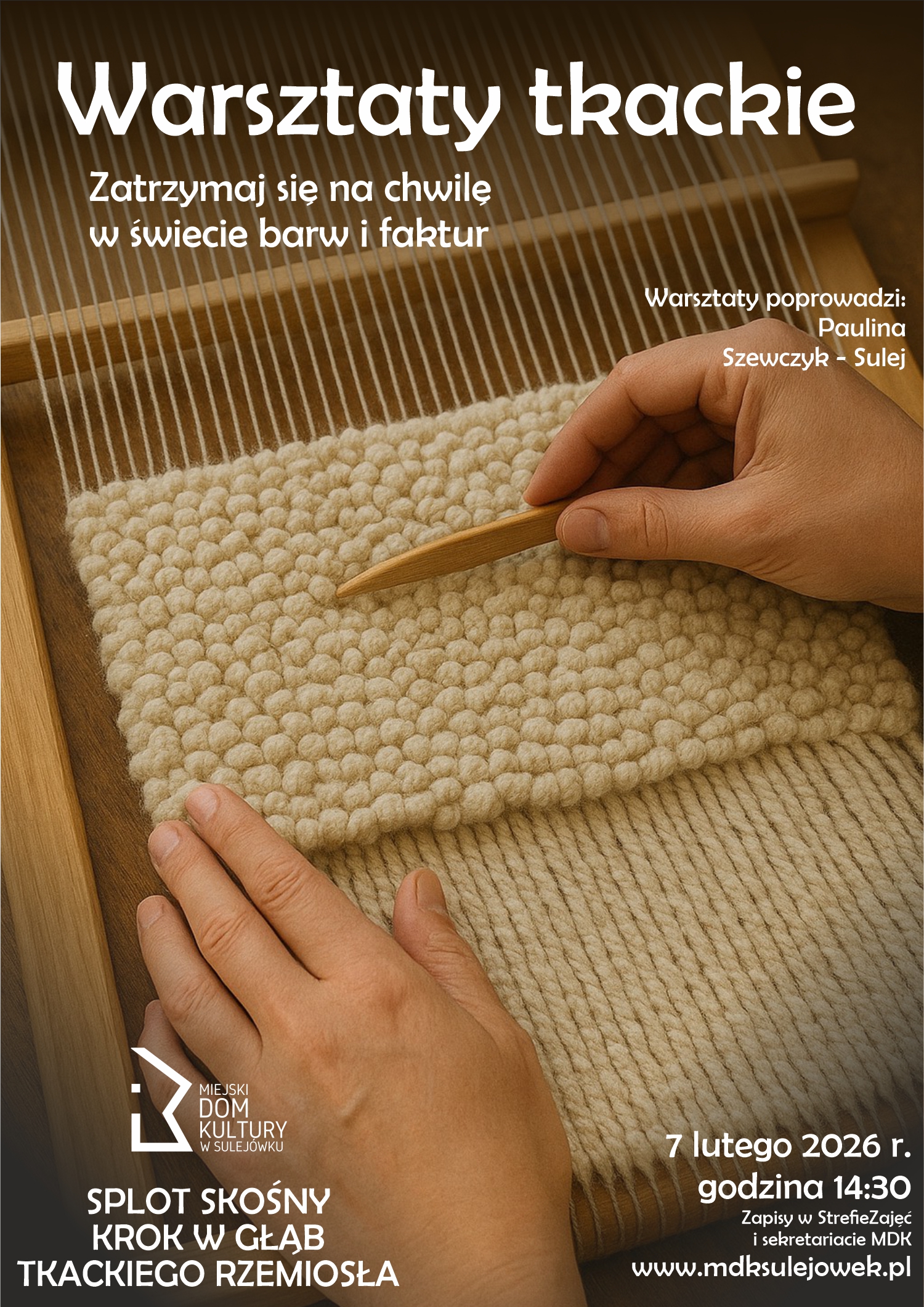 Zapraszamy serdecznie na nasze sobotnie warsztaty tkackie!Podczas zajęć poznasz podstawowe sploty i techniki tkackie, nauczysz się tworzyć własne tkaniny i...