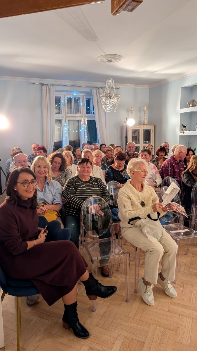 ,, Spotkanie” Irminy Matyjasek-Jałowieckickiej występ w sali Grabskich w LO w Sulejówku ul. Paderewskiego – spektakl dla seniorów w ramach Uniwersytetu III Wieku